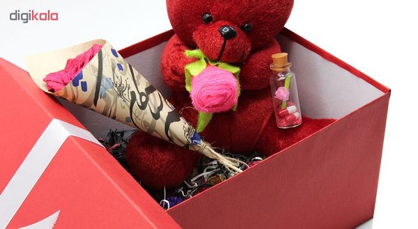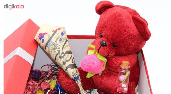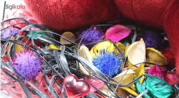 ست هدیه VLN4 مناسب تمام سنین است و ترکیبی از اجزای متنوع و جذاب را در خود جای داده است. این پک شامل عروسک خرسی قرمز رنگ با ارتفاع 20 سانتیمتر به عنوان جز اصلی، گل خشک ریز شده در رنگهای متنوع، یک گل کاغذی شاخهای رنگارنگ، پوشال و سایر تزئینات جذاب میباشد که جلوهای چشمگیر به هدیه میبخشد.